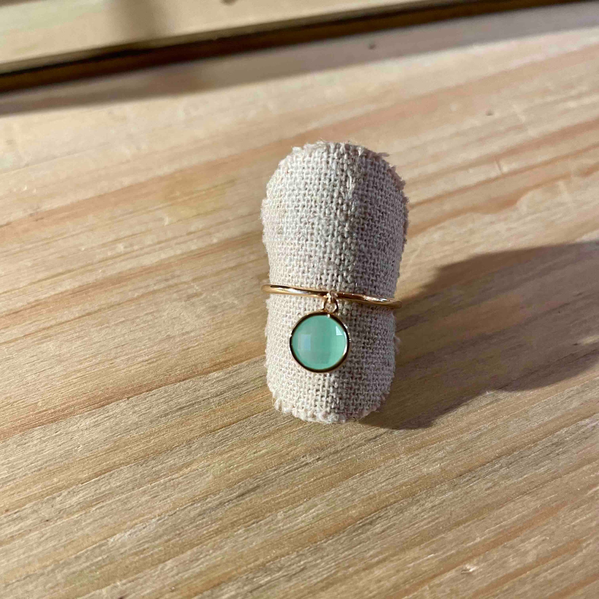 Bague Anneau Fin en Plaqué Or & pampille en Pierre Semi-Précieuse
