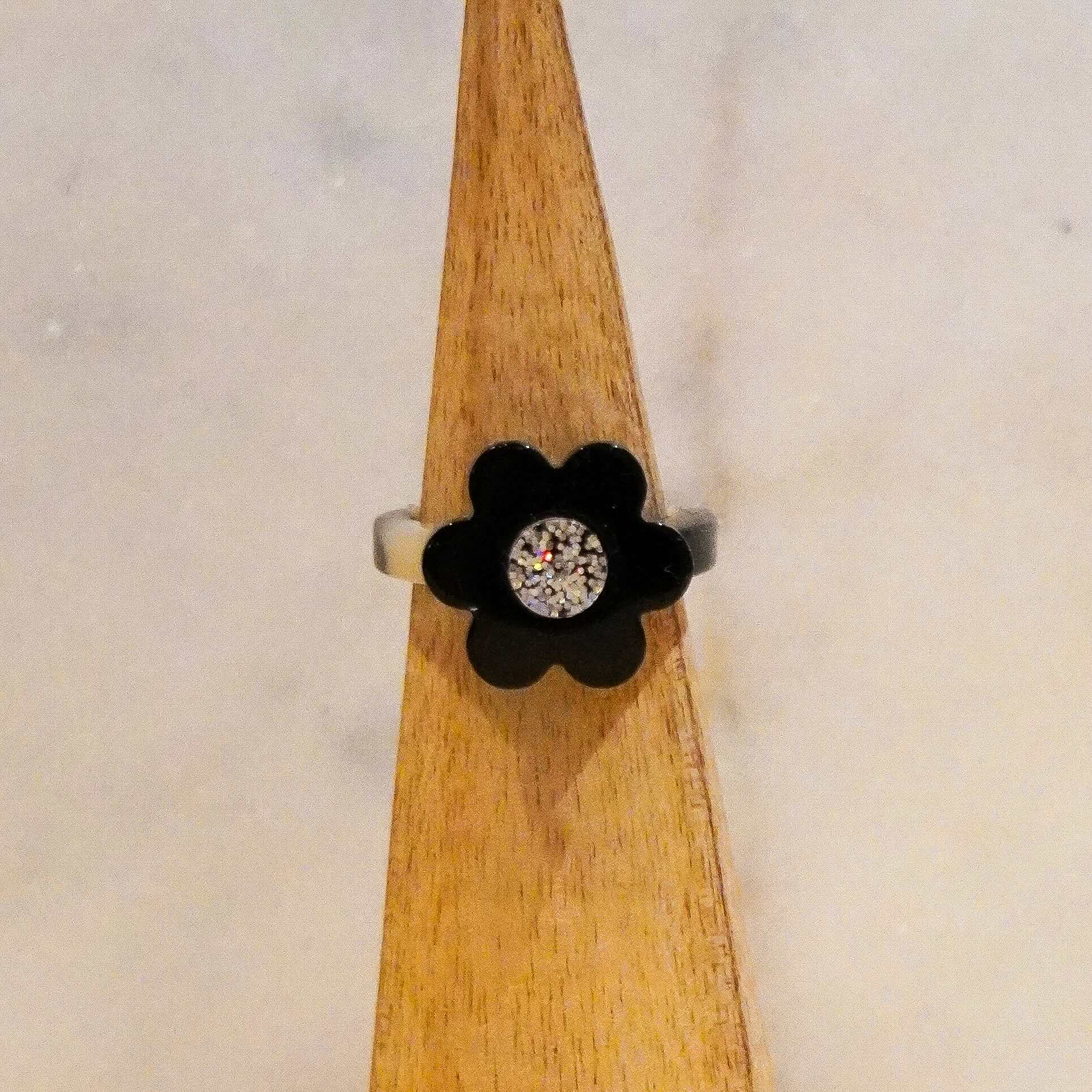 Apportez une note originale et colorée à votre style avec cette bague fleur en acétate, disponible en plusieurs associations de couleurs. Moderne, légère et confortable, elle se distingue par son design artisanal et ses finitions soignées.