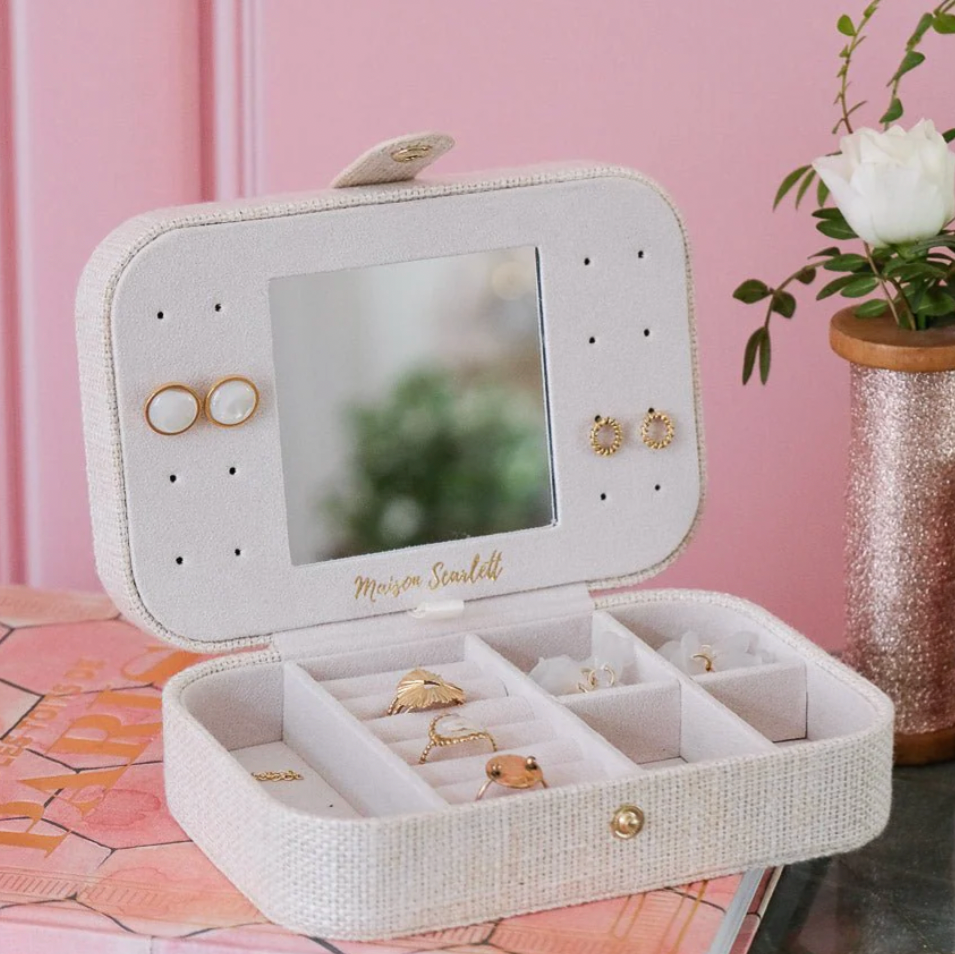 La boîte à bijoux Brigitte effet lin en détails :