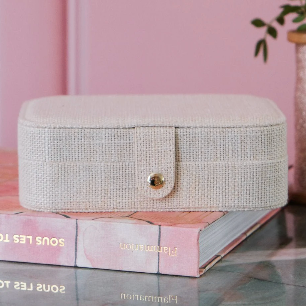 Boite à bijoux Brigitte en lin beige