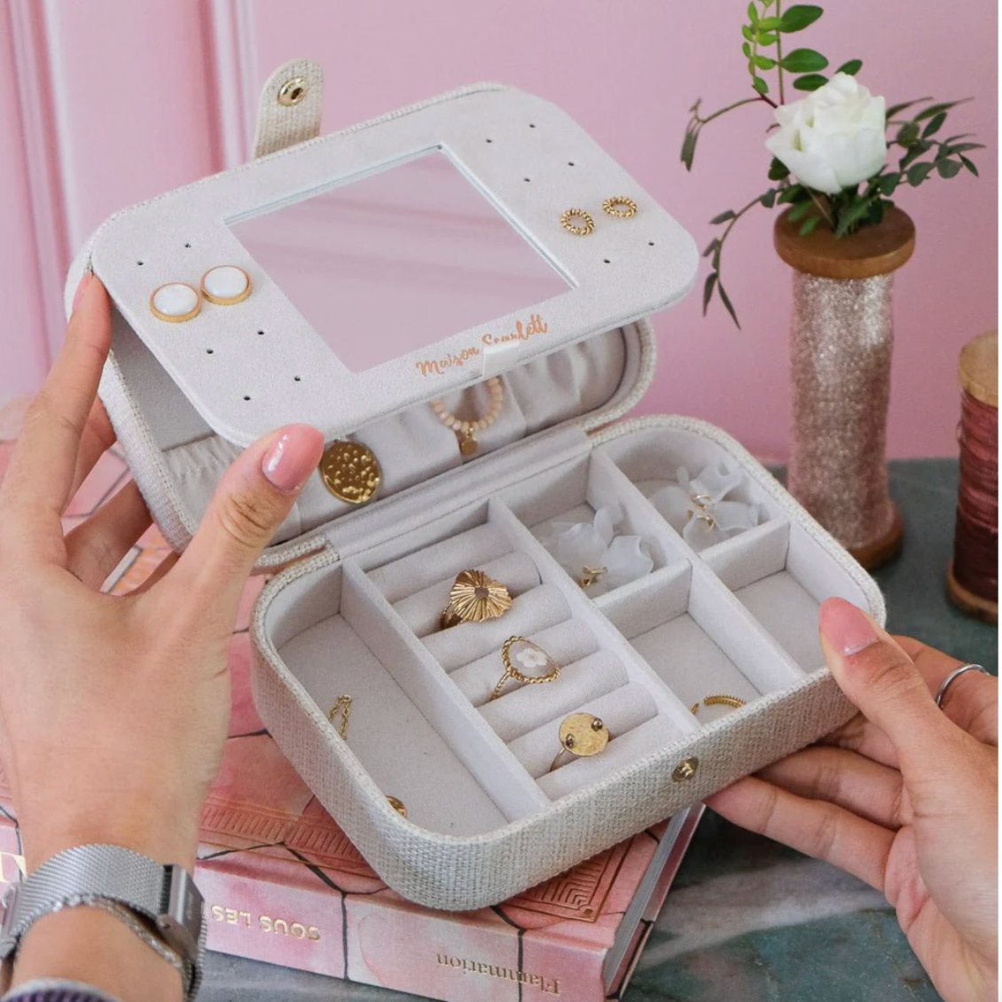 Vous pourrez d’ailleurs également l’utiliser comme boîte à bijoux principale à la maison si vous avez peu de bijoux.