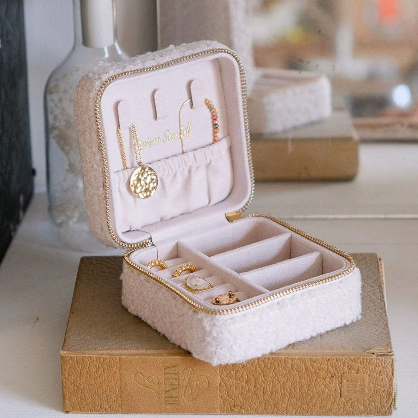 Boite à bijoux Corinne en moumoute beige