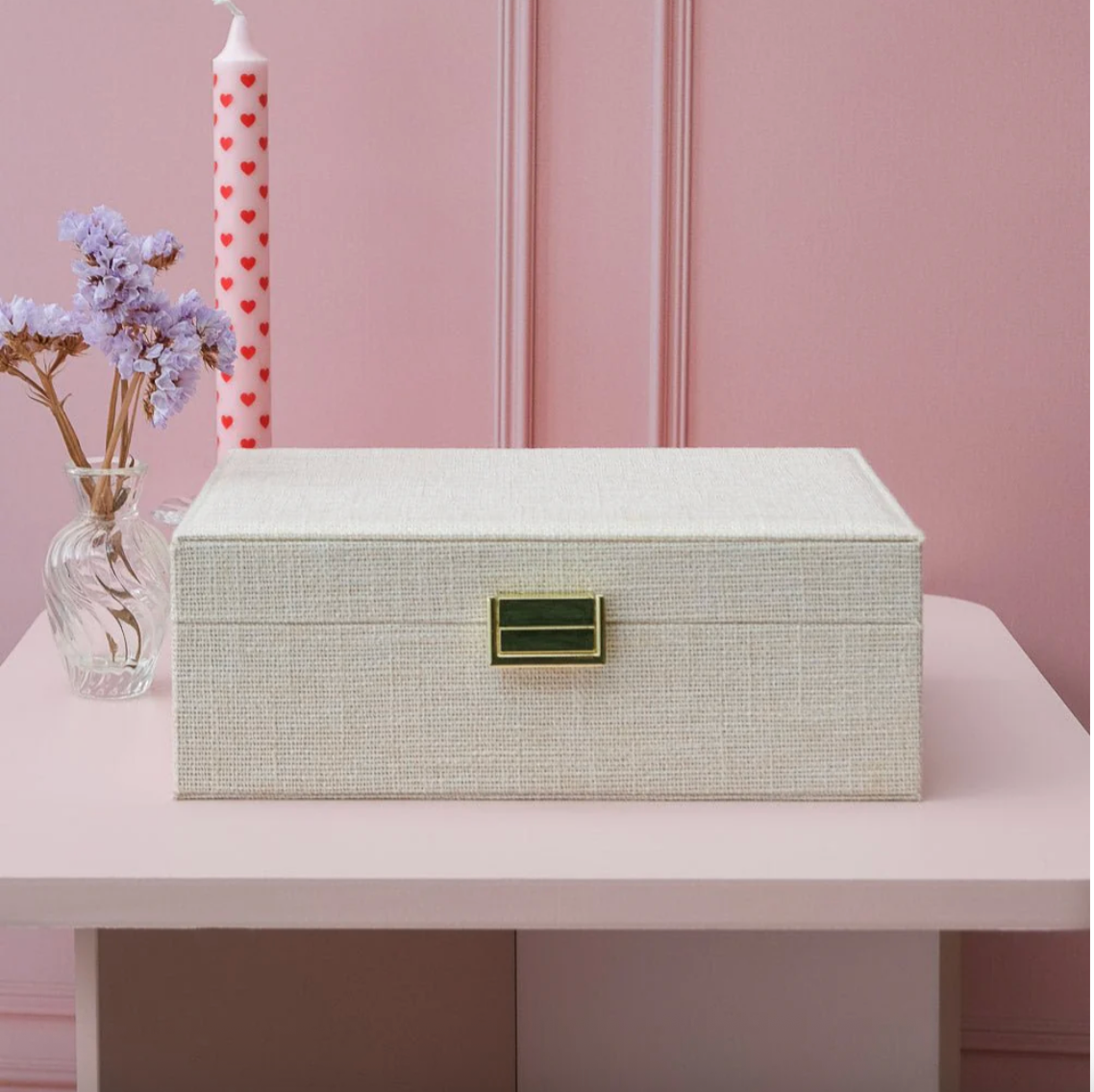 Boite à bijoux Louise en lin beige