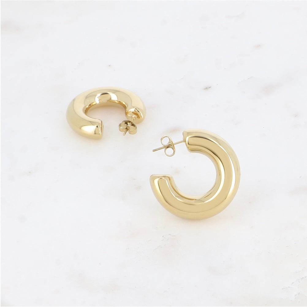 Ces créoles épaisses en acier inoxydable sont parfaites pour un look minimaliste et tendance. Leur anneau large leur apporte une élégance affirmée.