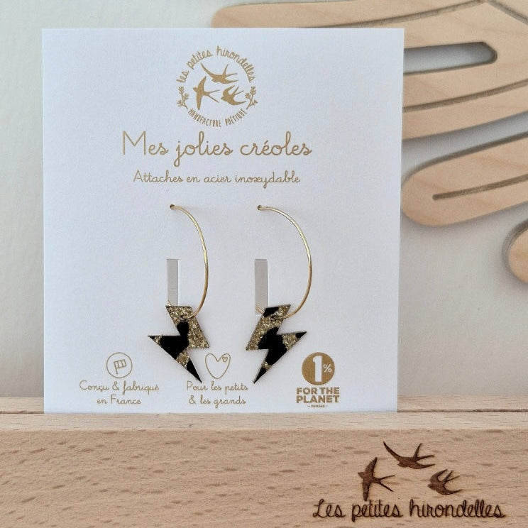 Créoles Éclair Pailletées – Boucles d’oreilles légères et uniques
