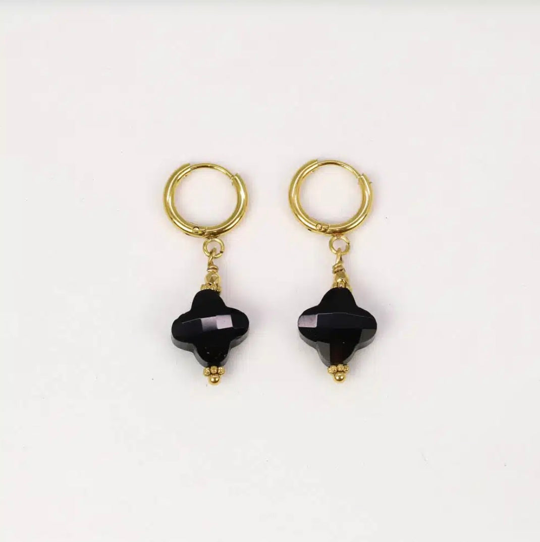 Boucles d’oreilles Maria – Trèfle en pierre fine et acier inoxydable doré