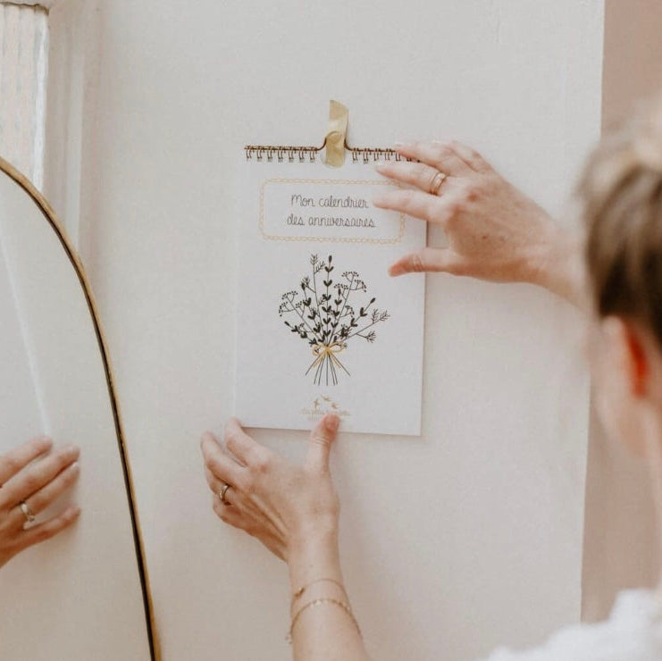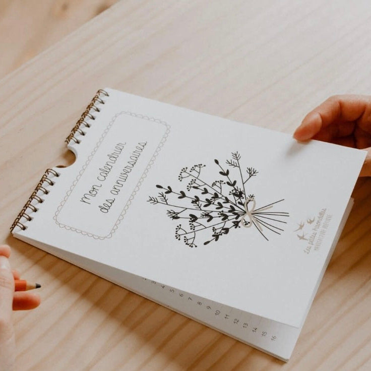 Ne laissez plus passer les dates importantes ! Ce calendrier des anniversaires est un joli support pour noter les anniversaires et fêtes à célébrer pour la famille et les amis. Ses illustrations botaniques sur papier d’art ajoutent une touche d’élégance et de poésie à votre quotidien.