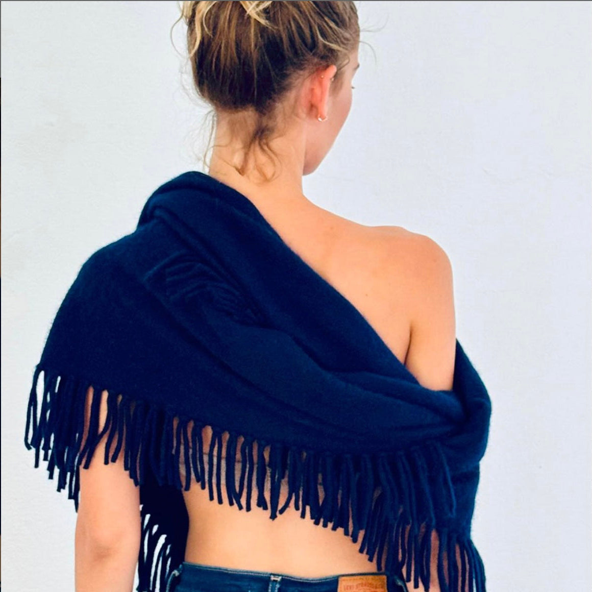 Sa forme triangulaire oversize, bordée de franges délicates, lui confère une allure à la fois chic et décontractée — parfaite pour envelopper vos tenues d’une touche de chaleur et d’élégance.