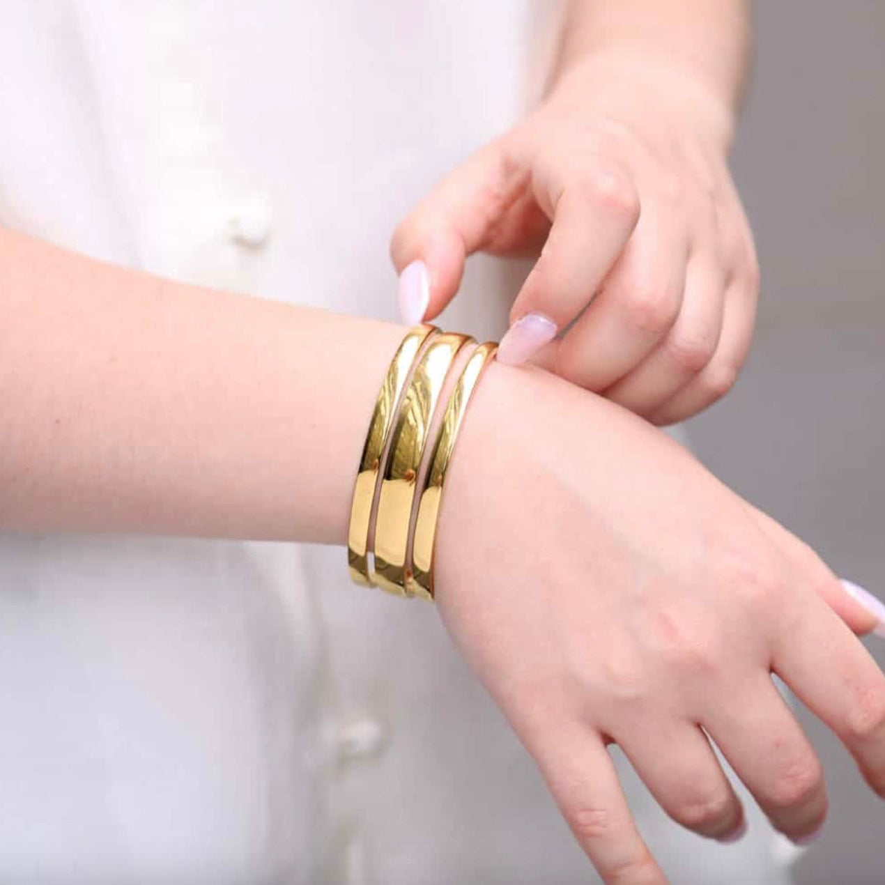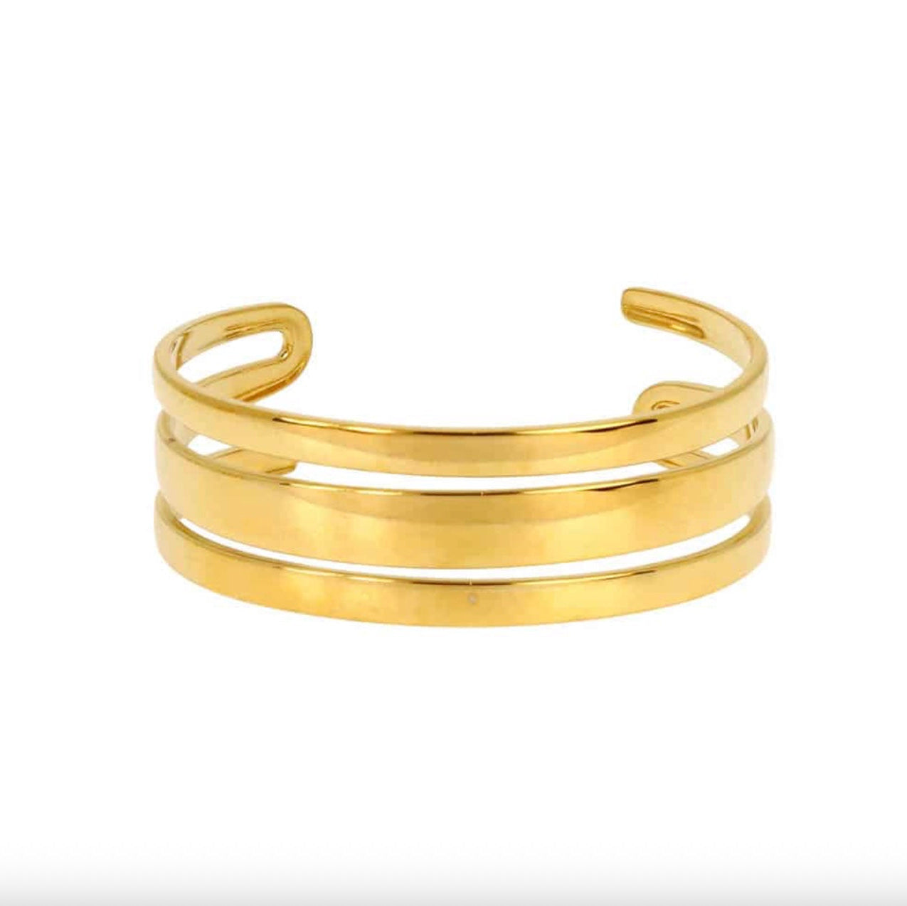 Le bracelet jonc 3 rangs séduit par son design ajouré et sa brillance raffinée. Conçu en acier inoxydable doré, il allie élégance et modernité, apportant une touche lumineuse à toutes vos tenues.