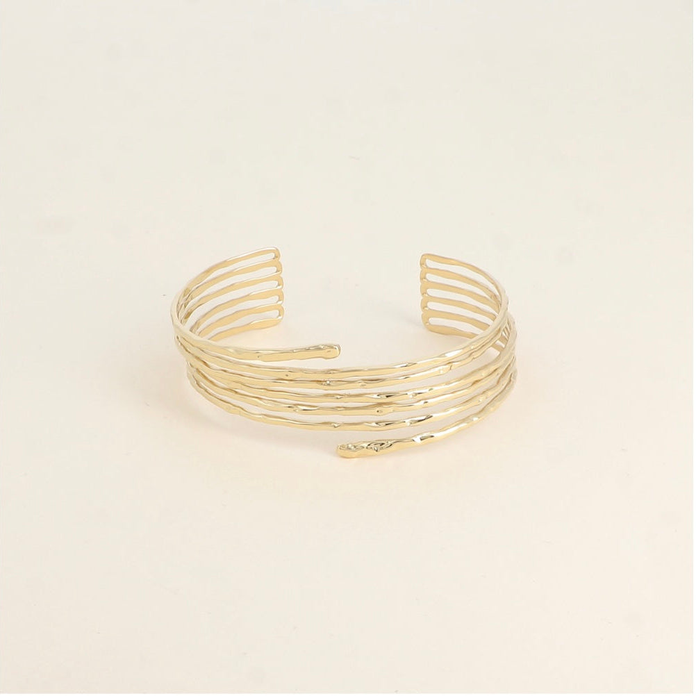 Bracelet type manchette en acier inoxydable composé d'un effet légèrement texturé.