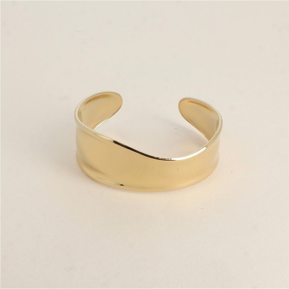Bracelet type manchette en acier inoxydable ondulé, à porter seul ou à accumuler sur le poignet.