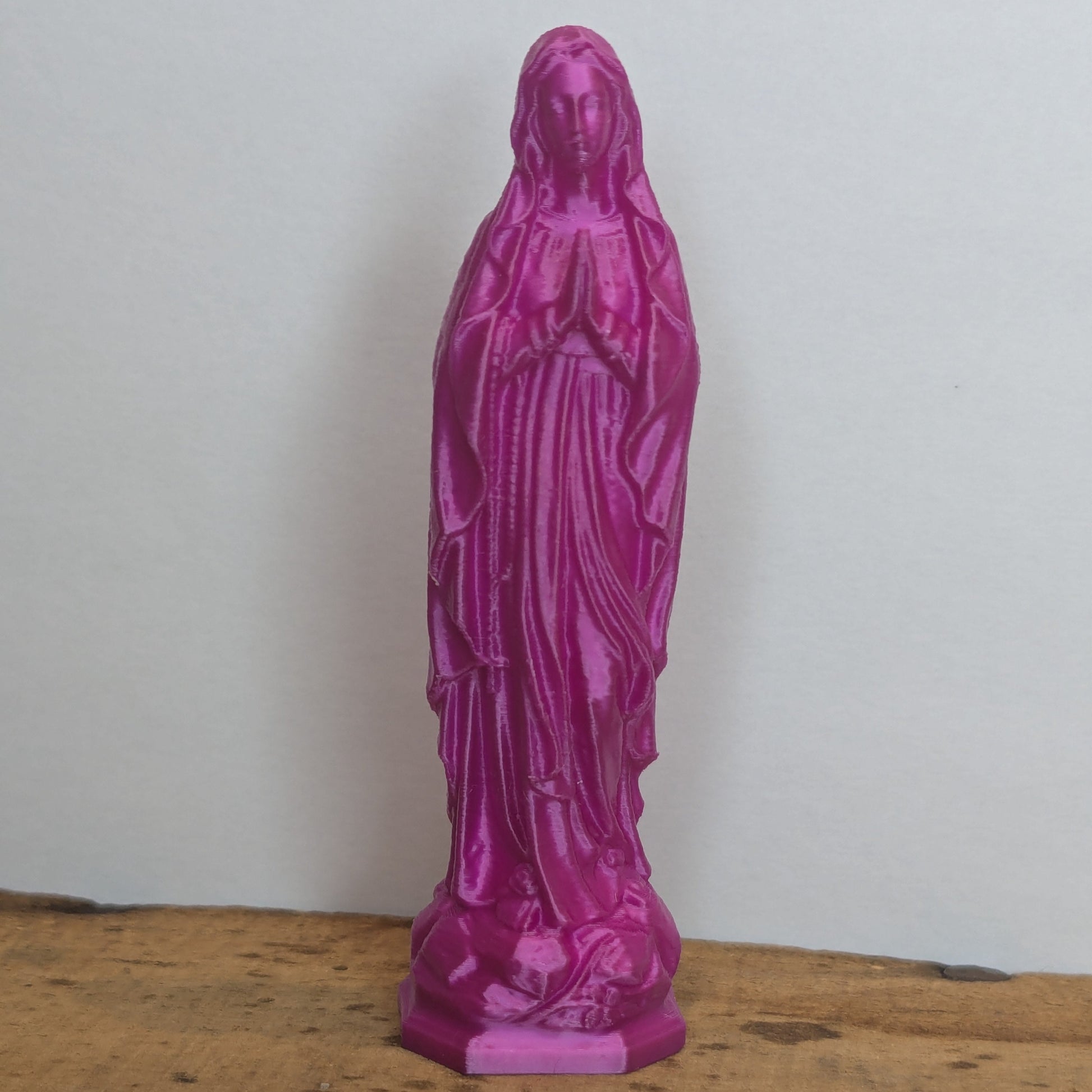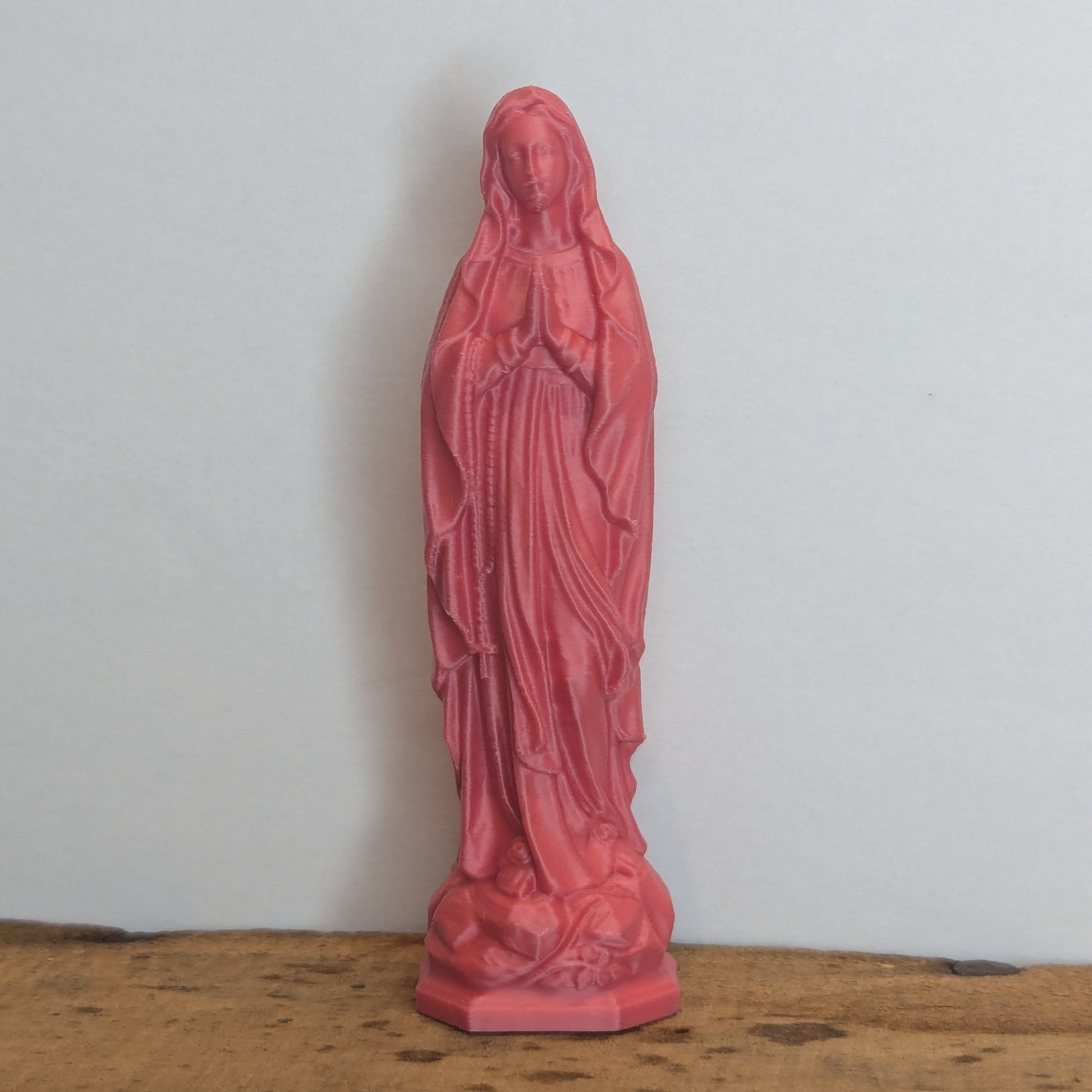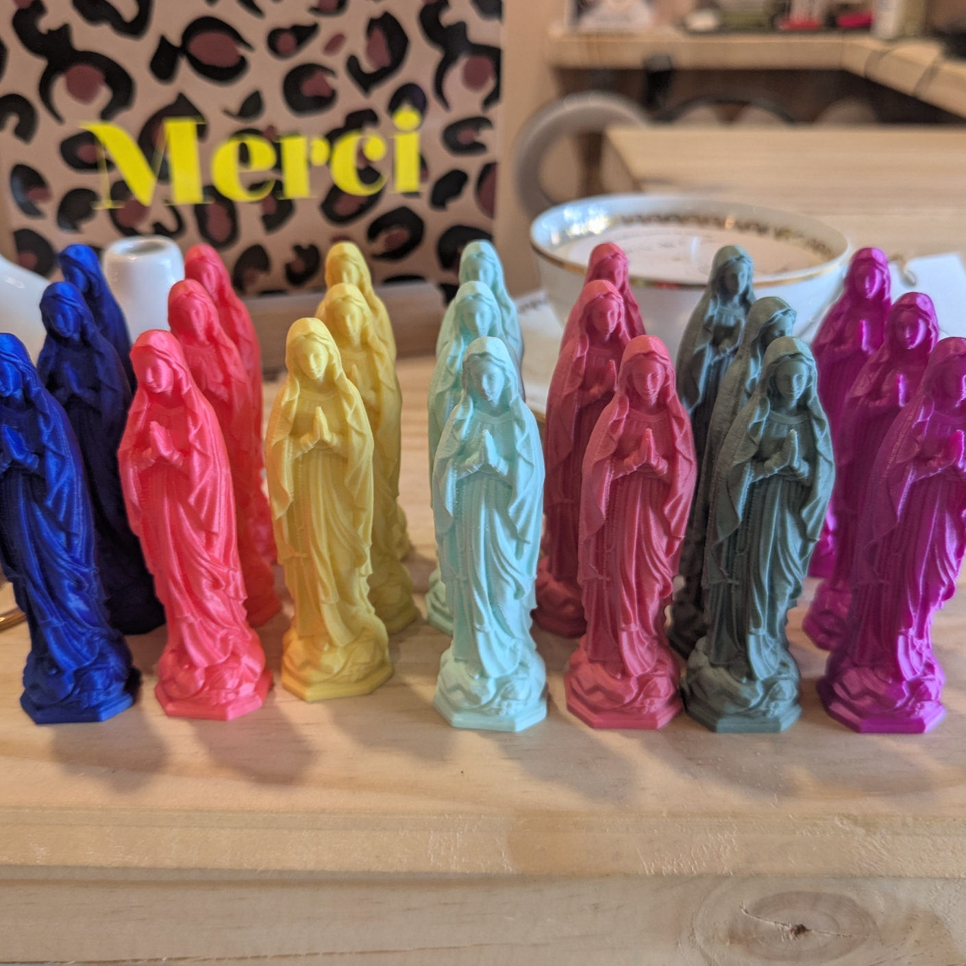 Ces mini Vierges au design épuré sont réalisées en impression 3D. Parfaites pour une décoration délicate ou un cadeau symbolique, elles allient modernité et spiritualité avec finesse.