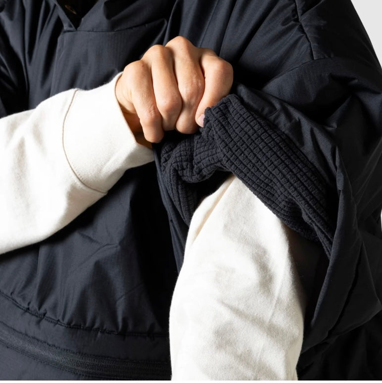 - Imperméable à l'extérieur et semblable à une serviette à l'intérieur, ce poncho surdimensionné est fabriqué à partir de tissu REPREVE® Ripstop 50D 100 % recyclé.