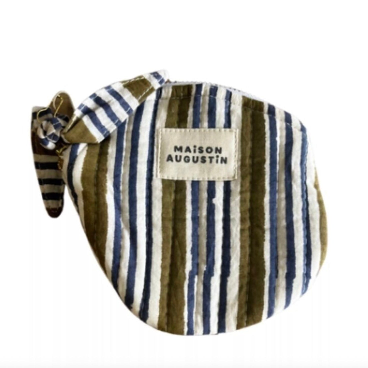 Fabriqué à Jaipur, en Inde, il est confectionné en 100% coton matelassé et imprimé à la main selon la technique traditionnelle du block-print. Chaque motif est appliqué à l’aide d’un tampon sculpté dans le bois et de pigments naturels, rendant chaque pièce unique. De petites irrégularités peuvent apparaître : elles font tout le charme de cet accessoire artisanal ♡.