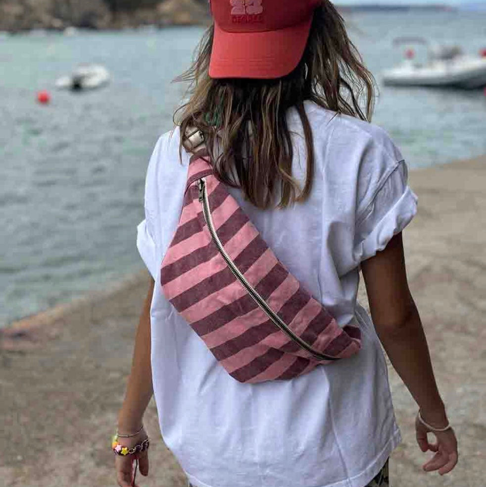 Sac Banane rayures bordeaux flamingo – Pratique, stylée et écoresponsable